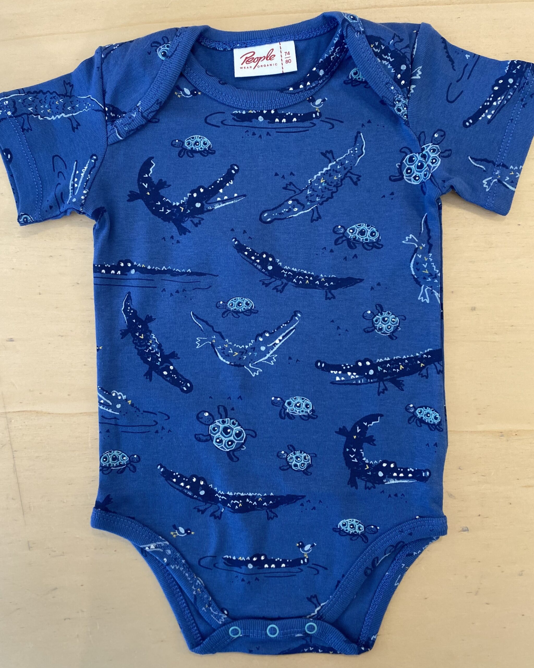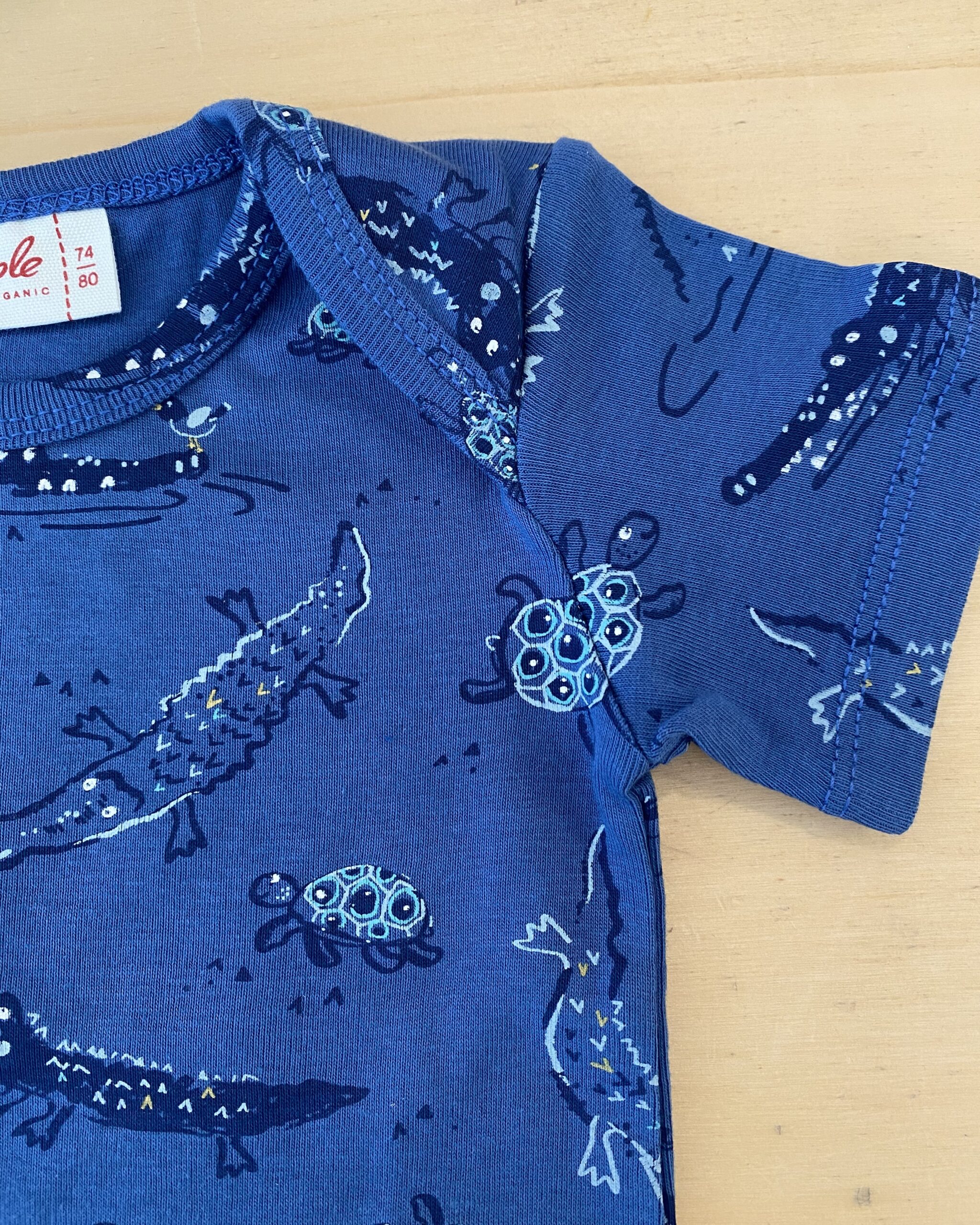 Body a manica corta in morbido cotone biologico garantito GOTS. Il modello ha un’apertura pratica sulla spalla, pensata per rendere più facile la vestizione del neonato.